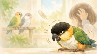 家族にインコが4羽いる、にぎやかで少し誇らしい毎日。その中の一羽、ズグロシロハラインコの彼が、ここ3か月ほど「シャケ化」しています。